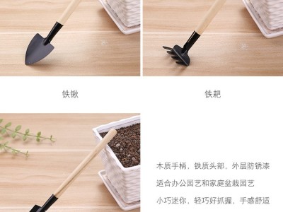 园艺工具三件套 迷你园林小铁铲/耙/锹 多肉植物盆栽种花松土铲