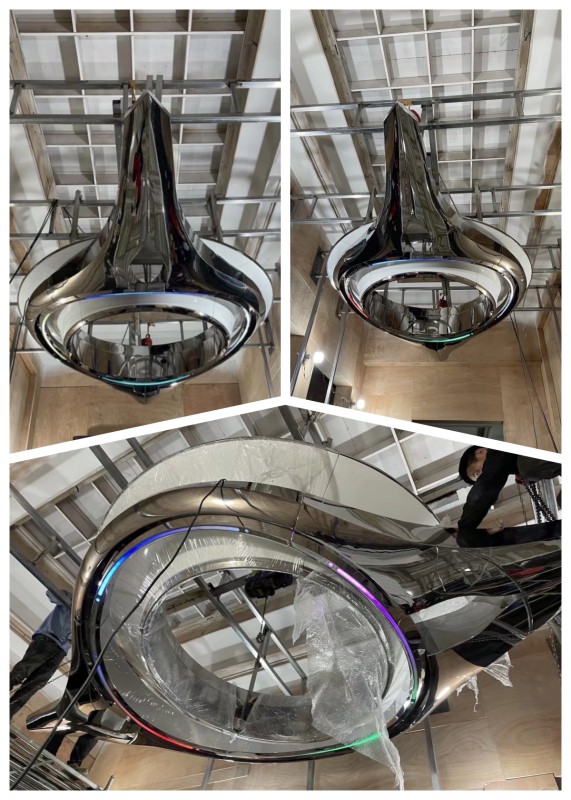 不锈钢镜面抽象飞船雕塑 室内装饰吊顶
